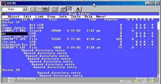 The directory structure as viewed in Diskedit shows the file entries as follows